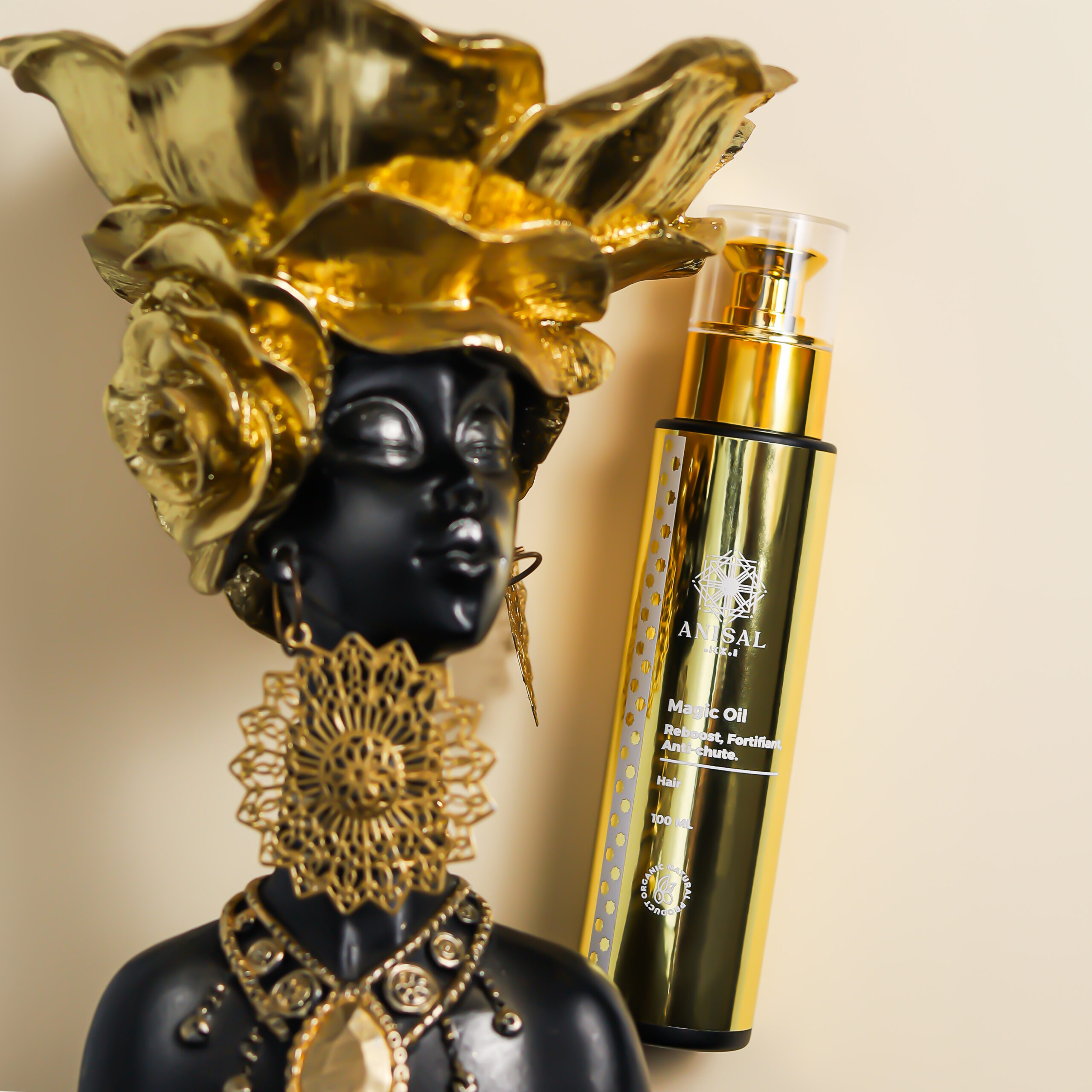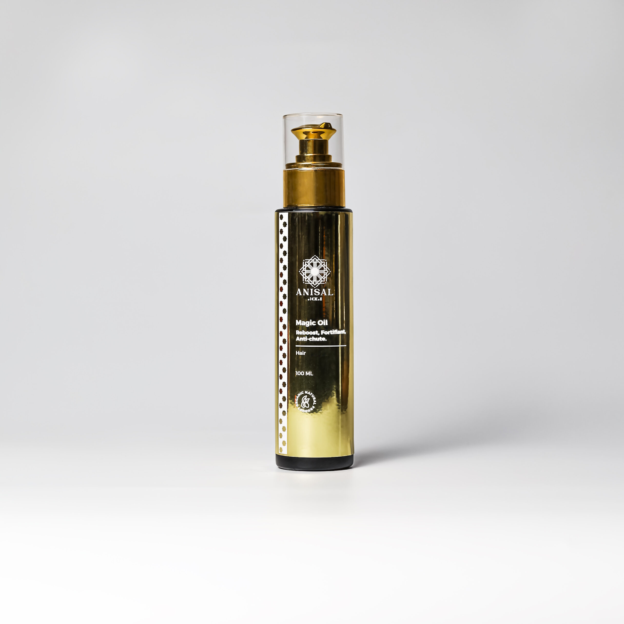 Ingrédients : Huile d’argane (Argania spinosa), huile d’amande douce (Prunus dulcis), huile de nigelle (Nigella sativa) Huile de ricin (Ricinus communis), Huile d’Avocat (Persea americana var. Gwen), huile essentielle de lavande (Lavandula angustifolia oil). Huile essentielle de cèdre d’atlas (Cedrus atlantica oil), Huile essentielle de romarin (Romarinus officinalis) huile essentielle geranium( Pelargonium graveolens), huile essentielle de la Menthe poivrée ( Mentha Piperita oil).Conditionnement : FLACON A POMPE EN VERRE NOIR OPAQUE DE 100 M